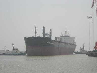 經(jīng)過(guò)韓通船舶重工有限公司的所有員工的努力,首制57000噸散貨輪在圓滿完成各項(xiàng)指標(biāo)和測(cè)試后于5月29日上午10:00??吭陧n通公司碼頭.武亦文總經(jīng)理在碼頭迎接試航人員一行.該船于2007年6月6日開(kāi)工,2008年1月23日下水,并將在6月中旬交船,此船為SDARI設(shè)計(jì)的系列船的第一條船,入BV級(jí),船東為新加坡大新公司.