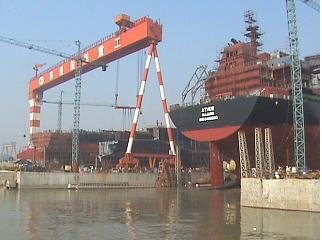 12月10日,第6條57000噸散貨輪(船號:HT002)在韓通船舶重工有限公司2號船臺順利下水.