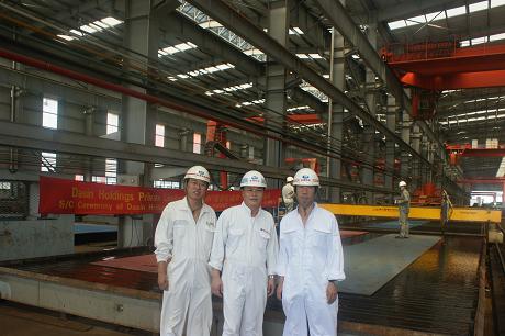 2010年8月23日上午9:30,我司為DA SIN建造的57000噸散貨輪(船體號(hào):HT069)在我司新船體車間舉行開工儀式,該船入BV船級(jí)社。陳林軍常務(wù)副總、船東代表參加了該儀式。