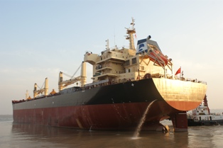 我司為Eagle船東建造的57000噸系列散貨輪(HT095)達(dá)到了交船狀態(tài),2012年11月20日在我司碼頭舉行了交船儀式。該船入LR船級社。至此,該船成功交付。