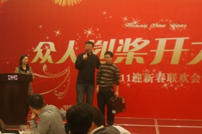 迎春晚宴現(xiàn)場隨機抽獎讓晚會氣氛再次高漲,而特等獎筆記本電腦的抽取更是將晚會的氣氛推向了最高點。大家歡欣鼓舞,熱情高漲,都沉浸在歡樂之中。