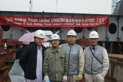 2011年3月21日上午9:38,我司為大新船東建造的57000DWT散貨輪(船體號(hào):HT068)在韓通1號(hào)船臺(tái)順利上臺(tái)。該船入LR船級(jí)社,預(yù)計(jì)2011年6月30日交船。韓通副總李繼念和船東船檢代表參加了此次上臺(tái)儀式。