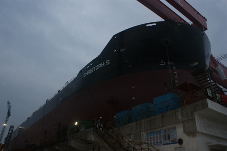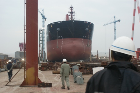 2011年4月21日早上5:40,我司為Peter Dolhe 建造的57000DWT散貨輪(HT025)在韓通2號(hào)船臺(tái)成功下水,該船入LR船級(jí)社。陳林軍常務(wù)副總,李繼念副總,李泰然總助,船東代表及船級(jí)社代表參加該儀式。