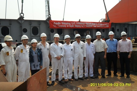 我司為Eagle Bulk 建造的57000噸散貨輪(船體號:HT090)于2011年6月9日下午14:00在我司3號船臺舉行了上臺儀式,該船入LR船級社。陳興副總及船東船檢代表參加了該儀式。