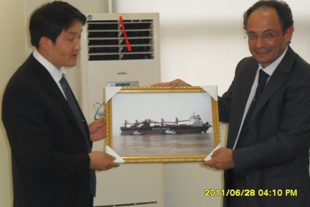 2011年6月28日,我司為意大利船東COECLERICI集團(tuán)建造的55000噸自卸散貨船(船體號(hào)HT080)成功交船,入意大利船級(jí)社,代理公司為蘇美達(dá)貿(mào)易公司。該船自下水以來(lái),克服了勞動(dòng)力不足,首制船,PSPC首制船,GREEN PASSPORT、系統(tǒng)不雜等不利因素,在陳林軍常務(wù)副總的帶領(lǐng)下,通過全體員工的辛苦努力,在短暫的3個(gè)月內(nèi)完成了55000DWT自卸船的試航、調(diào)試等工作,特別是自卸系統(tǒng)的調(diào)試,圓滿完成任務(wù)!受到了船東代表MR. Corrado的好評(píng)!