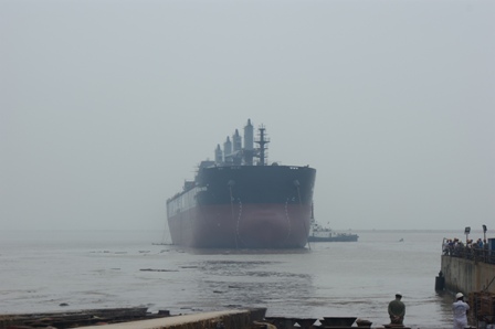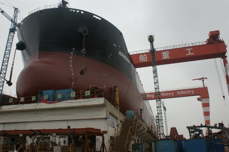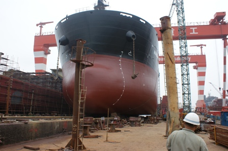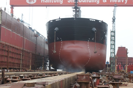 2011年7月31日, 我司為 DA SIN 建造的57000DWT散貨輪(HT045)在韓通1號船臺成功下水,該船入BV船級社。武亦文總經理,陳興副總,李繼念副總,船東代表及船級社代表參加該儀式。