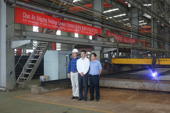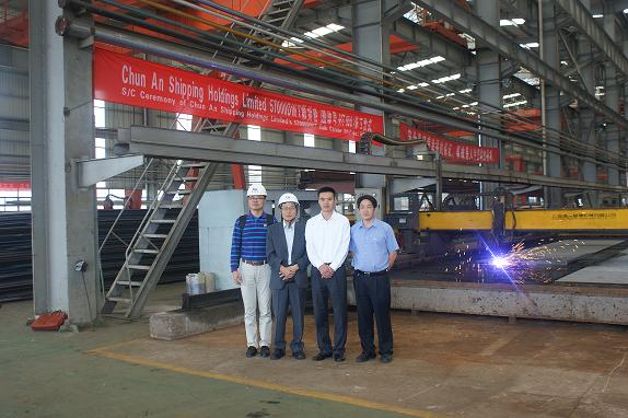 2011年9月20日,我司為春安船東建造的57000噸散貨輪(船體號:HT100)開工儀式在韓通新船體車間順利舉行,該船入NK船級社。陳興副總及船東、船級社代表參加了該儀式。
