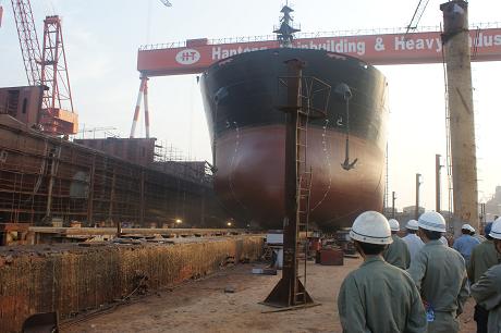 2011年10月14日,我司為DA SIN船東建造的57000噸散貨輪(HT030)在韓通1號(hào)船臺(tái)成功下水,該船入BV船級(jí)社。陳林軍常務(wù)副總,船東代表及船級(jí)社代表參加該儀式。