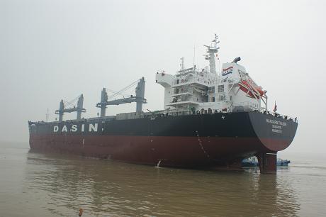 江蘇韓通船舶重工有限公司為大新船東建造的57000噸散貨輪(HT072)達到了交船狀態(tài),該船入ABS船級社。2011年9月26日,在文景國際大酒店司會議室潘學(xué)軍副總與船東代表簽訂了該船的交船文件。至此,該船成功交付。