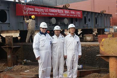 我司為Eagle Bulk船東建造的57000DWT散貨輪(船體號:HT092)于2011年11月25日上午10:00在我司2號船臺舉行了上臺儀式,該船入LR船級社。李繼念副總及船東船檢代表參加了該儀式。
