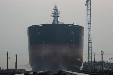 2011年12月13日,我司為DA SIN建造的57000DWT散貨輪(HT088)在韓通3號船臺成功下水,該船入LR船級社。陳林軍副總,船東代表及船級社代表參加該儀式。