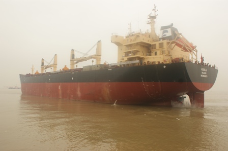 上海船舶研究院的船舶設(shè)計(jì)專家稱:”這種新型的57K散貨船已根據(jù)最新的散貨船共同結(jié)構(gòu)規(guī)范要求,優(yōu)化了相關(guān)結(jié)構(gòu)設(shè)計(jì),尤其是滿足了裝載鋼卷所要求的結(jié)構(gòu)加強(qiáng)。新船型一次航程能夠負(fù)載54,000噸的鋼卷,而空船重量沒有多少增加?,F(xiàn)在,這條船也已符合EEDI-PHASEI的要求。”