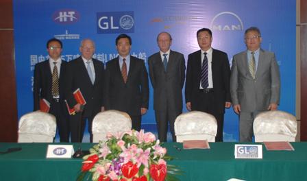 江蘇韓通船舶重工有限公司、德國JADE WERKE與德國勞氏船級社(GL)、德國 TECHNOLOGY公司、MAN公司于2012年5月16日簽訂了國內(nèi)首艘5萬噸雙燃料LNG動力船技術(shù)合作協(xié)議。