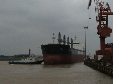 我司為DA SIN建造的57000噸系列散貨輪(HT082)達(dá)到了交船狀態(tài),2012年6月14日在糧油碼頭舉行了交船儀式。該船入LR船級(jí)社。至此,該船成功交付。