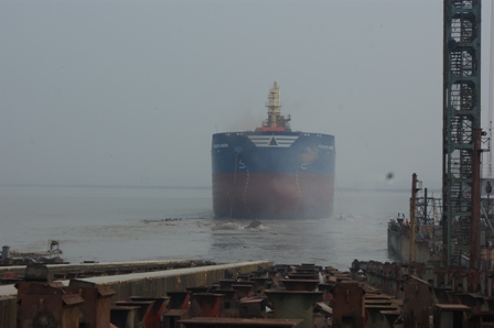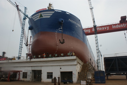 2013年6月10日,我司為韓國三星船東建造的57000DWT散貨輪(HT57-117)在韓通1號船臺順利下水,該船入KR船級社。周義慶副總經(jīng)理,船東代表及船級社代表參加該儀式。