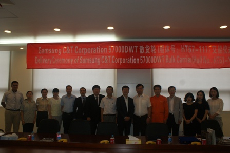 2013年8月29日,我司為韓國三星建造第二艘57000噸散貨輪(HT57-117)成功交船,該船入KR船級社。高振成副總經(jīng)理及船東代表在我司會議室舉行交船簽字儀式,船東對此船建造給予很高的評價。至此,該船成功交付。