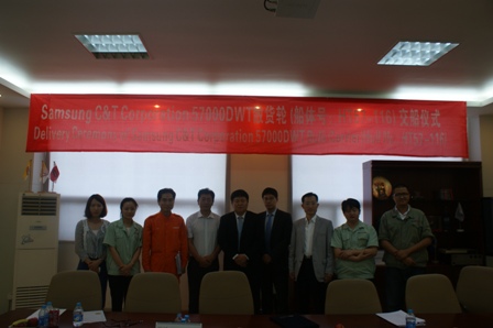 2013年7月1日,我司為韓國三星建造首艘57000噸散貨輪(HT57-116)成功交船,該船入KR船級(jí)社。于剛副總經(jīng)理及船東代表在我司會(huì)議室舉行交船簽字儀式,船東對(duì)此船建造給予很高的評(píng)價(jià)。至此,該船成功交付。