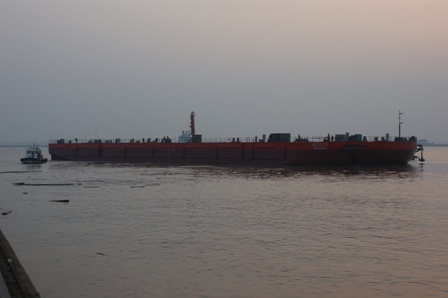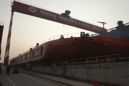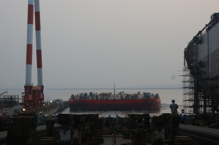 2013年10月23日,我司為海洋水建建造的駁船(HY051)在韓通1號(hào)船臺(tái)成功下水,該船入CCS船級(jí)社。周義慶副總經(jīng)理、船東代表及船級(jí)社代表參加該儀式。