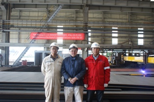 2014年1月13日,我司為日本日新船東建造的64000噸散貨輪(船體號(hào):HT64-129)開(kāi)工儀式在韓通新船體車間順利舉行,該船入BV船級(jí)社。周義慶副總經(jīng)理及船東、船檢代表參加該儀式。