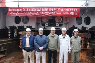 我司為日本日新船東建造的64000DWT散貨輪(船體號(hào):HT64-128)于2014年2月28日在我司1號(hào)船臺(tái)舉行了上臺(tái)儀式,該船入BV船級(jí)社。周義慶副總經(jīng)理及船東、船檢參加該儀式。