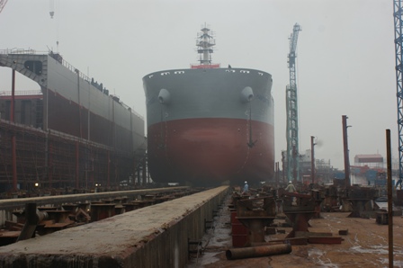 64000DWT散貨輪(船體號(hào):HT64-171)順利上臺(tái)
