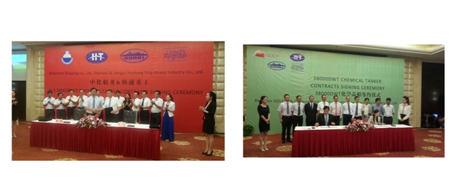 2014年8月8日,我司與中化船務(wù)簽訂4+3、香港金威船東簽訂1+2 38K不銹鋼化學(xué)品船訂單,該批訂單將于2016年下半年起陸續(xù)交付,該船型由SDARI設(shè)計(jì)。這是我司繼承接20.8萬載重噸散貨輪后,在船型大型化,技術(shù)附加值更高產(chǎn)品上邁出的又一里程碑。