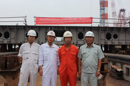我司為大新船東建造的64000DWT散貨輪(船體號:HT64-210)于2014年8月18日在我司3號船臺舉行了上臺儀式,該船入BV船級社。周義慶副總經(jīng)理及船東、船檢參加該儀式。
