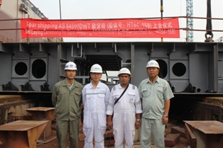 我司為FLEET船東建造的64000DWT散貨輪(船體號:HT64-159)于2014年8月30日在我司1號船臺舉行了上臺儀式,該船入DNV.GL船級社。周義慶副總經(jīng)理及船東、船檢參加該儀式。