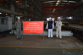 2014年11月28日,我司為德國PD船東建造的38800噸散貨輪(船體號:HT388-167)開工儀式在韓通新船體車間順利舉行,該船入LR船級社。董繼紅總經理助理及船東、船檢代表參加該儀式。