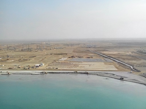 目前沙特SSPP防波堤項(xiàng)目進(jìn)展一切順利。從6月份開(kāi)工到目前為止,總計(jì)拋石量已達(dá)到128萬(wàn)m3, 其中南側(cè)拋石量達(dá)383562m3, 北側(cè)644424m3, 排水口252564m3。預(yù)計(jì)還需不到一個(gè)月的時(shí)間,南北側(cè)護(hù)堤全部連接,拋石工作量完成。11月1日起碼頭打樁工程也已經(jīng)開(kāi)始,截止到11月22日,已經(jīng)完成16根樁接樁,也成功進(jìn)行了14根樁的打樁工作。