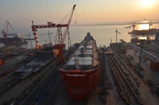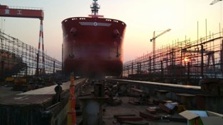 2015年1月8日,我司為挪威船東LIGHTHUOSE 建造的64000噸散貨輪(HT64-131)在韓通1號(hào)船臺(tái)成功下水,該船入DNV·GL船級(jí)社。公司領(lǐng)導(dǎo)、船東代表及船級(jí)社代表參加該儀式。