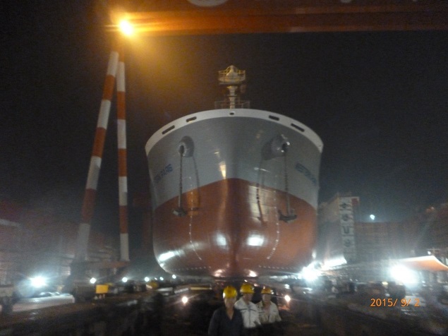 2015年9月2日,我司為船東NISSHIN 建造的38000噸散貨輪(HT38-139)成功下水,該船入BV船級社。公司領導、船東代表及船級社代表參加該儀式。