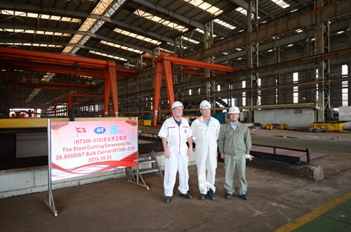 2015年10月23日,韓通為德國PD船東建造的38800噸散貨輪(船體號:HT388-212)開工儀式順利舉行,該船入LR 船級社。公司領(lǐng)導(dǎo)、船東、船級社代表參加該儀式。