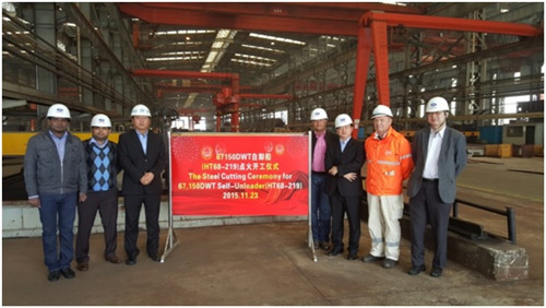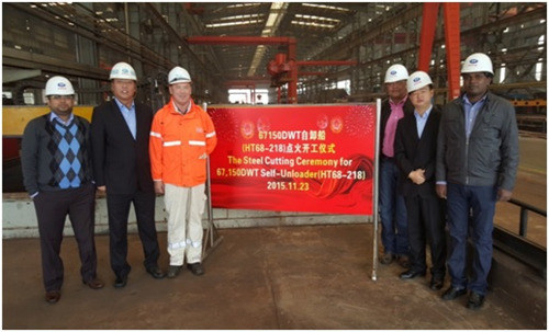 2015年11月23日,韓通為Vulica船東建造2條68000噸自卸船(船體號(hào):HT68-218,HT68-219)同日開(kāi)工,且順利舉行開(kāi)工儀式,該船入LR 船級(jí)社。公司領(lǐng)導(dǎo)、船東、船級(jí)社代表參加該儀式。