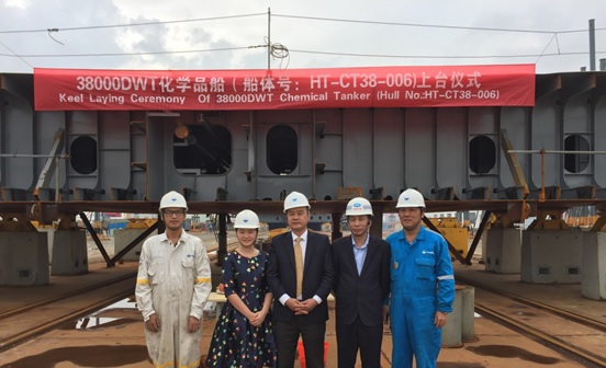 2016年10月12日,韓通為中化船務(wù)有限責(zé)任公司建造的38000噸不銹鋼化學(xué)品運(yùn)輸船(船體號(hào):HT-CT38-006)上臺(tái)儀式順利舉行,該船入LR 和CCS船級(jí)社。公司領(lǐng)導(dǎo)、船東、船級(jí)社代表及貿(mào)易公司代表參加該儀式。