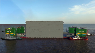 2016年11月30日,韓通、海洋再次聯(lián)合中標溫州甌江口大橋鋼沉箱項目。兩司聯(lián)合進入海上風電領(lǐng)域后,再次進入中鐵鋼構(gòu)工程。此項目為溫州甌江北口大橋主橋中塔基礎鋼沉井,長66*寬55*高59米,自重1.8萬噸,工期180天,集團利用自身資源完成制作、合攏、海上浮運到現(xiàn)場錨固等項目工程。
