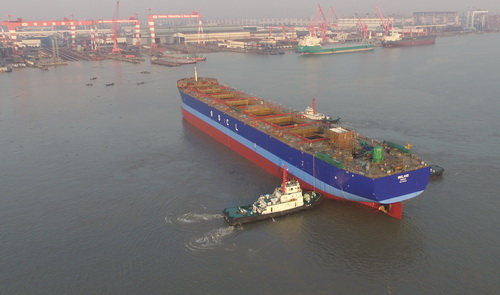 2017年2月12日,我司為Vulica美國船東建造的68000噸自卸船(船體號:HT68-218)順利下水,該船入LR船級社。公司領導、船東、船檢代表參加該下水儀式。
