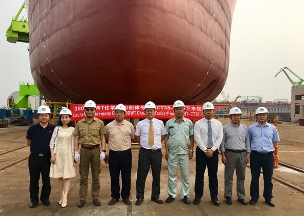 2017年6月1日,我司為船東中化船務(wù)建造的38000DWT不銹鋼化學(xué)品船(船體號:HT-CT38-007)順利下水,該船入LR 和CCS船級社。公司領(lǐng)導(dǎo)、船東、船檢代表參加該下水儀式。