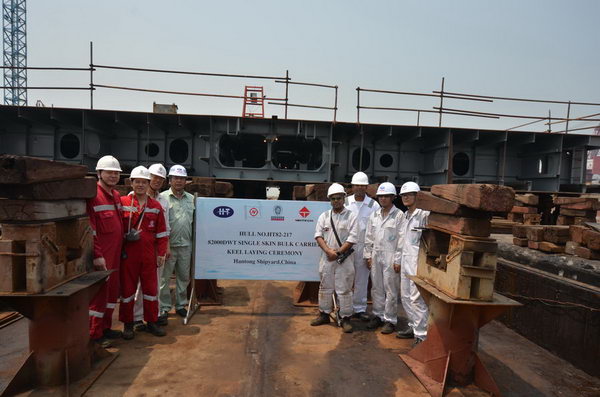 我司為日本日新船東建造的82000噸散貨輪(船體號(hào):HT82-217)于2018年6月12日在我司舉行了上臺(tái)儀式,該船入BV船級(jí)社。公司領(lǐng)導(dǎo)、船東代表及船級(jí)社代表參加該儀式。