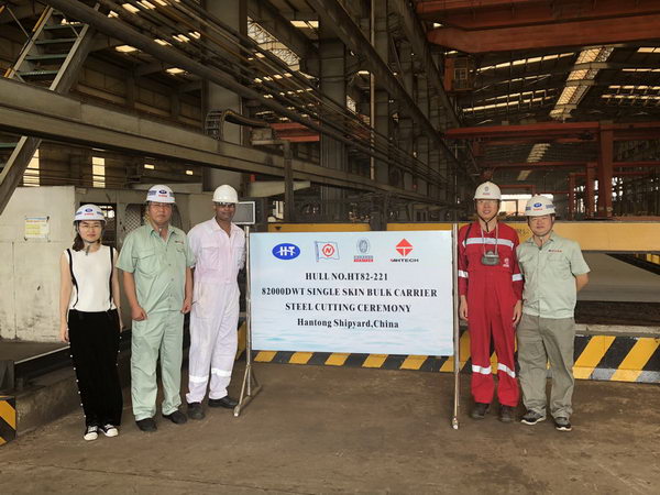2018年8月20日,我司為日本Nisshin船東建造兩艘82000噸散貨輪(船體號(hào):HT82-221、HT82-235)同時(shí)開(kāi)工,該船入BV船級(jí)社。公司領(lǐng)導(dǎo)、船東代表及船級(jí)社代表參加了該儀式。