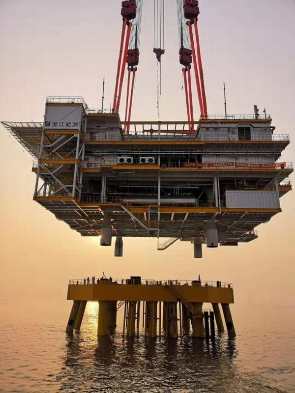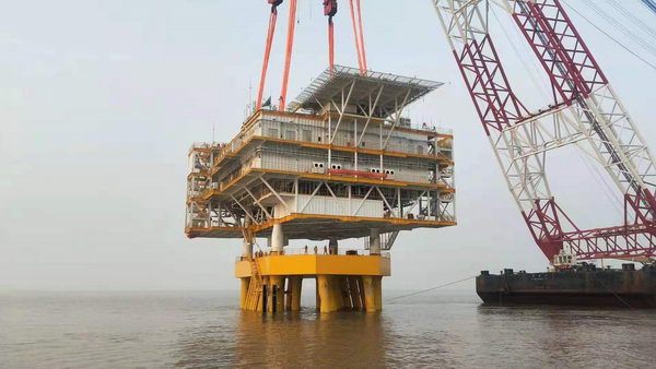 雙創(chuàng)竹根沙項目升壓站海上安裝就位圖