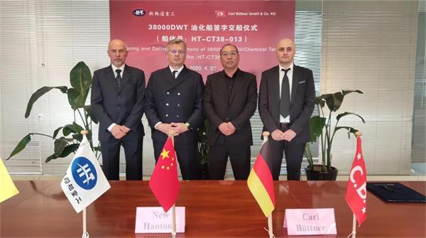 2020年4月22日,公司為德國船東CB建造的38K噸油化船 “CB Caribic”(船體號:HT-CT38-013)成功簽字交船,該船入DNVGL船級社。