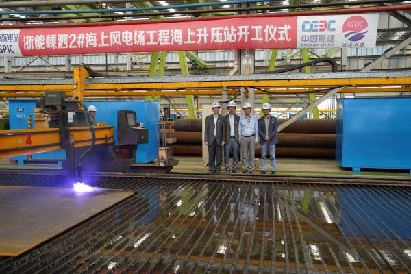 浙能國電投嵊泗2#海上升壓站開工儀式在業(yè)主單位和各參建單位代表共同聯(lián)手按下點火按鈕并成功開始切割后圓滿結束。