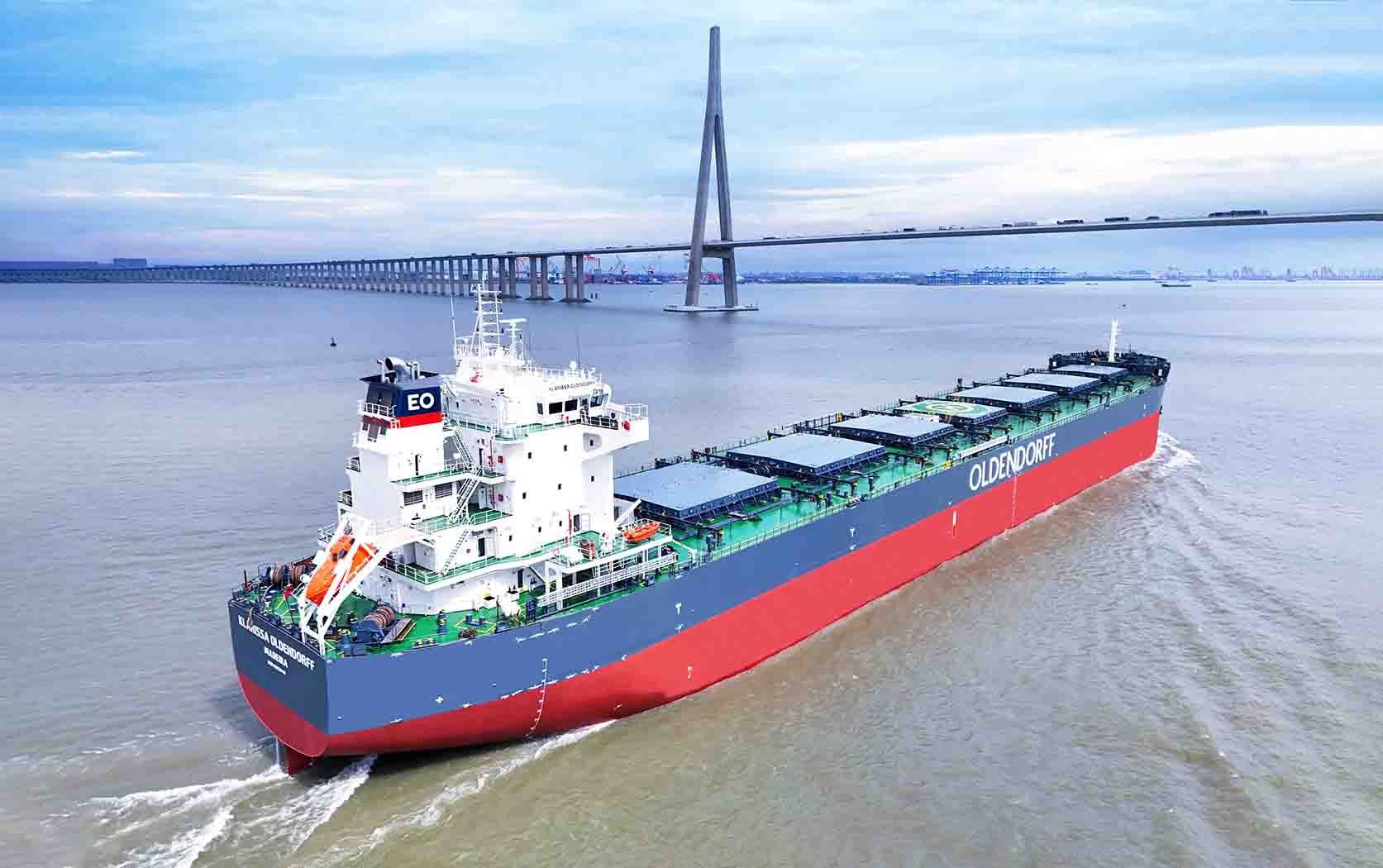 2023年10月20日,韓通為德國(guó)OLDENDORFF船東建造的82000噸散貨輪 “KLARISSA OLDENDORFF”(船體號(hào):HT82-265)順利簽字交付,HT82-265是系列船中的第8艘,也是韓通交付給OLDENDORFF的第27艘,屬于目前航運(yùn)市場(chǎng)主流的散貨船船型,入LR船級(jí)社。